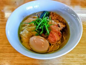 和歌山ラ-メン…ス-プは醤油豚骨べ-スが主流。