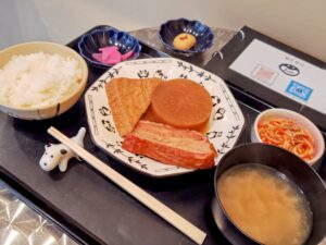 具だくさんの今日のお味噌汁の具材は豆腐にワカメ、キャベツにサツマイモ!身体の芯から温まります!