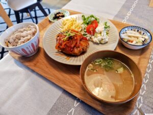 わしわしと、味噌汁⇨肉メシ⇨小鉢のループ!