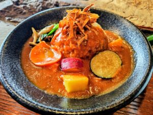 ルーは小麦粉を使っていないインド式でスパイス使いはかなり絶妙で複雑な味わいながら旨いです。インドと日本がほどよくミックスされたカレーでスパイスの調和が日本人の好みを考えているからだと思います。
