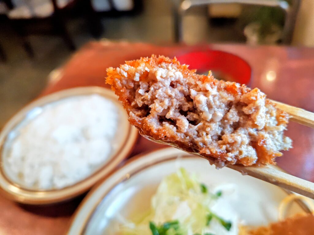 半分に割ると肉汁じゅわっと肉々しいメンチカツ!