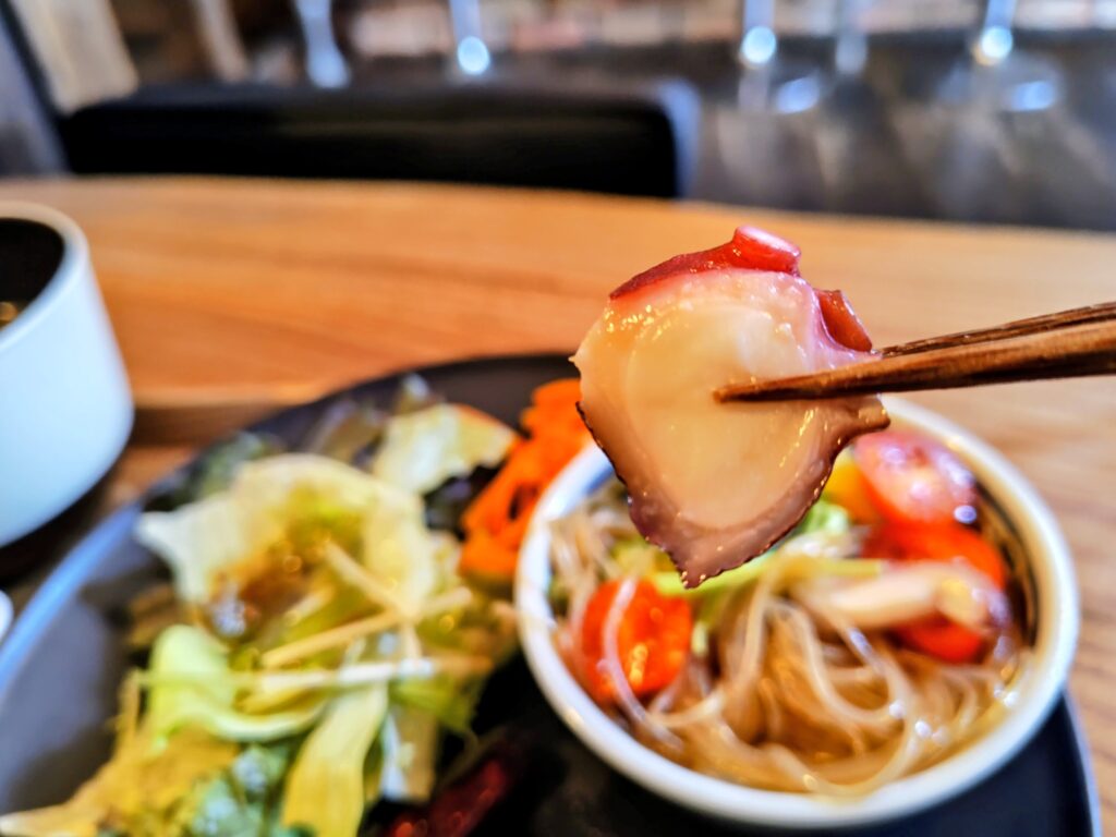 大きなタコのブツ切りに適度な酸味と上品な味付けです。