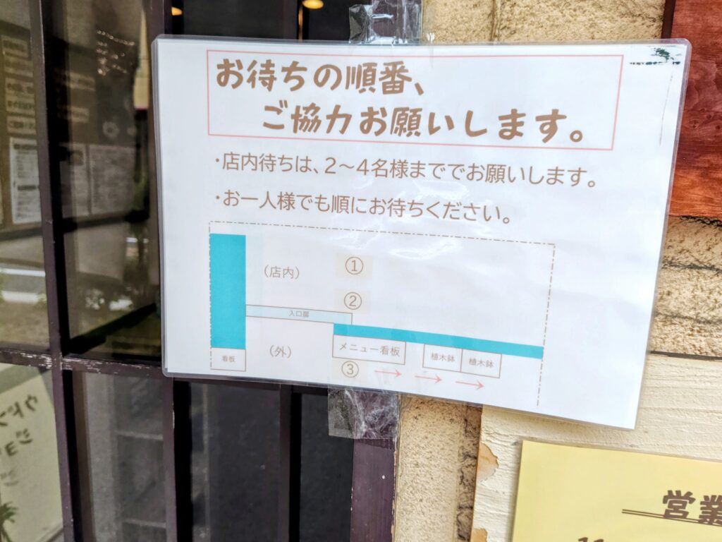 基本並びの多いお店さん!入口右側に並びルールのパウチがあります。