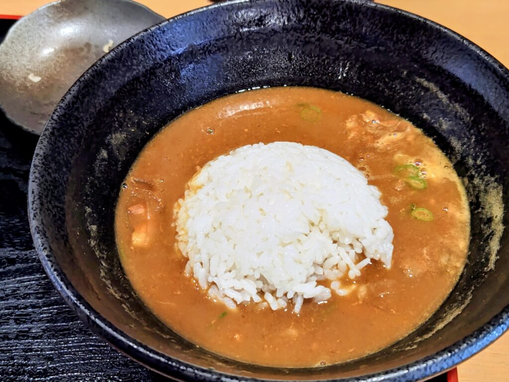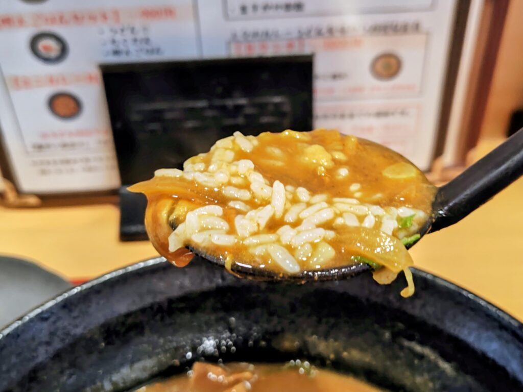 レンゲ一杯にカレー出汁をすくって一口!