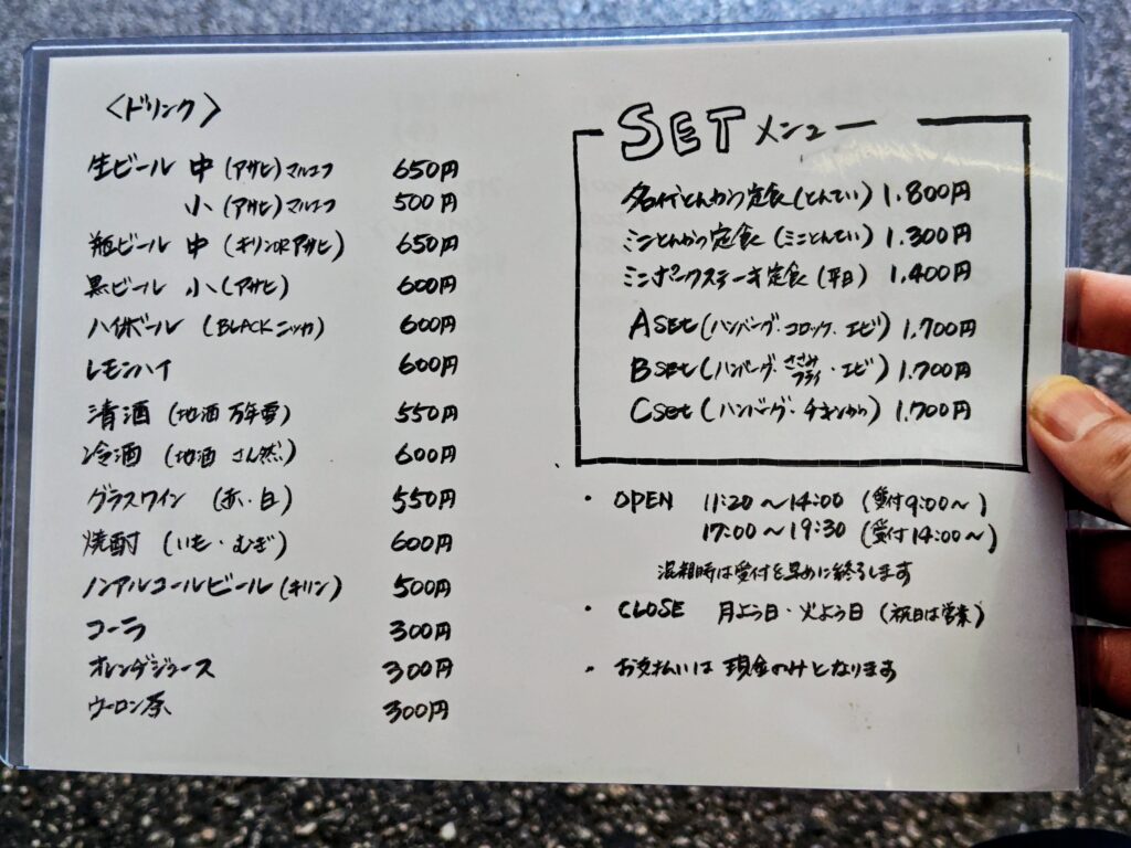 メニューは定食・Set、単品、付き出し、トッピングにドリンク!