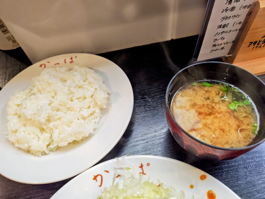 ご飯は岡山県のお米使用!隣の方が大盛+50円のオーダーをされていて、食べれる方でしたらオススメしたい量のナイスな盛りです。