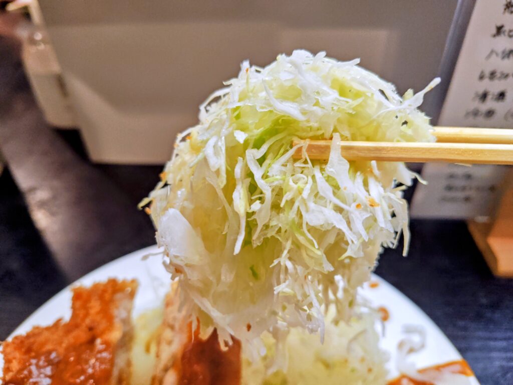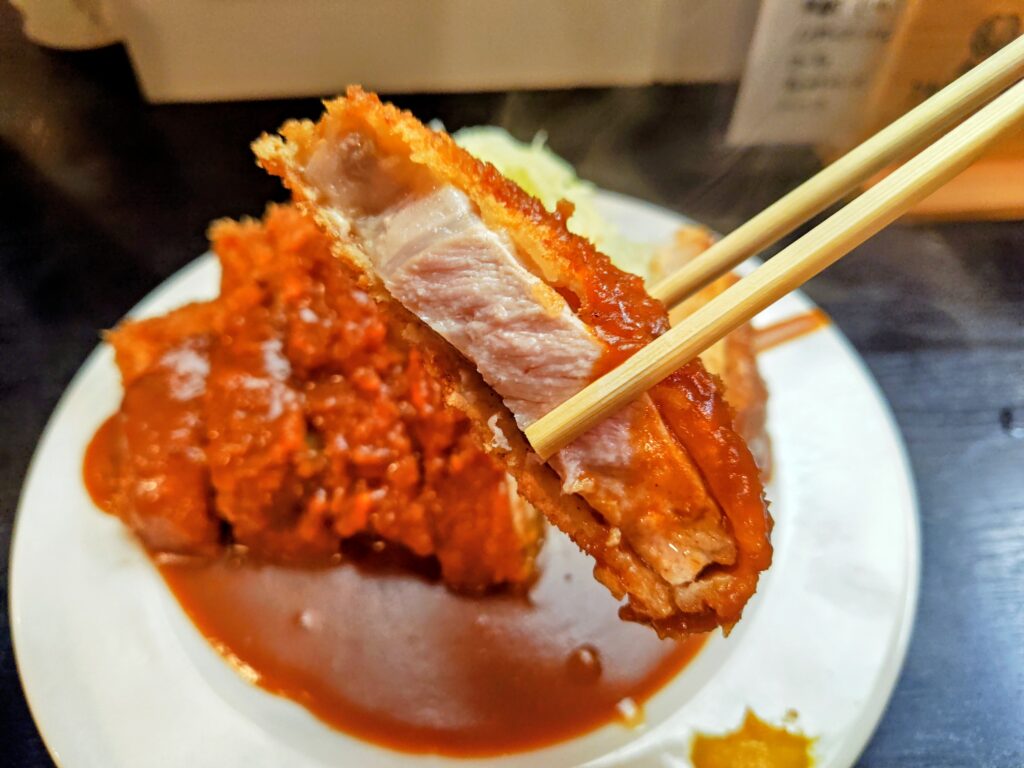 パン粉の衣はザクッと食感に豚肉は適度な脂身と柔らかジューシーです。