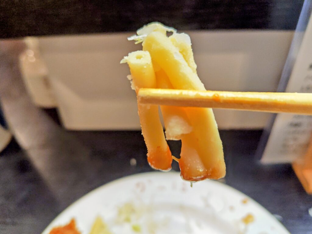 とんかつの下にはマカロニ、茹ジャガイモ!