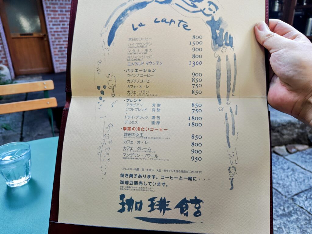 看板は『珈琲館』文字ですが、マットに『KURASHIKI 1971 COFFEE-KAN』文字があります。
