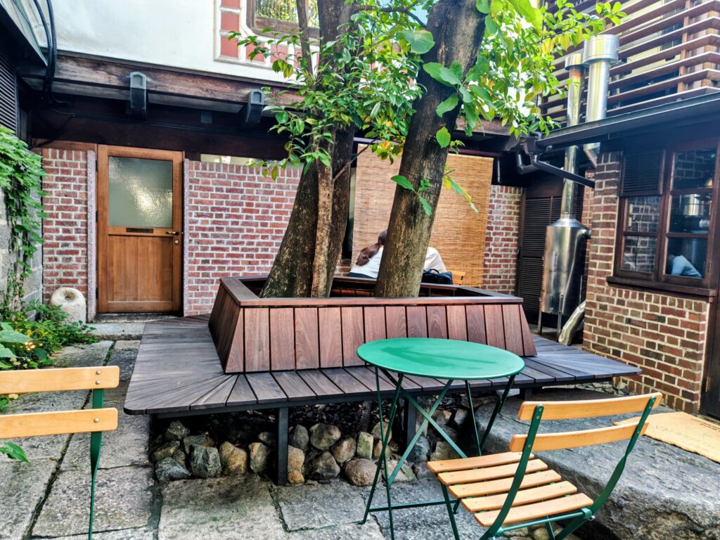 中庭テラス席は大きな落葉樹のシンボルツリーがある素敵な空間!