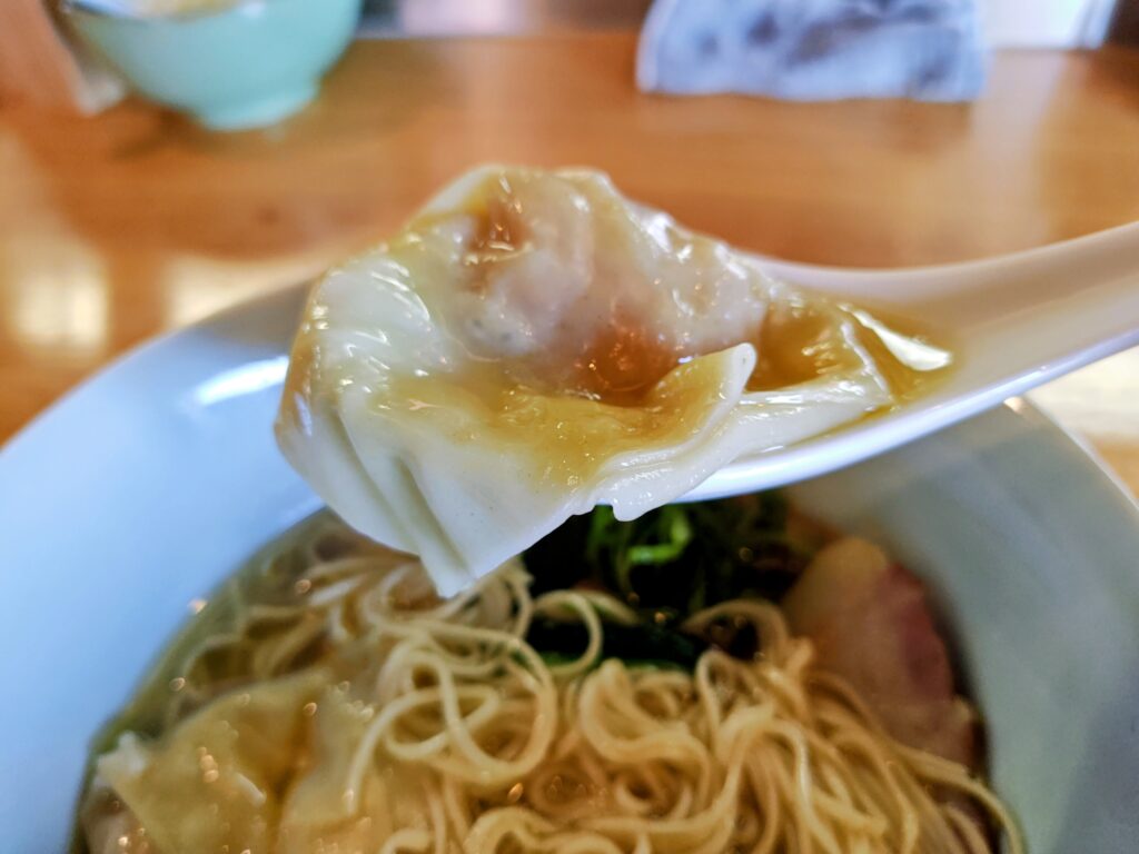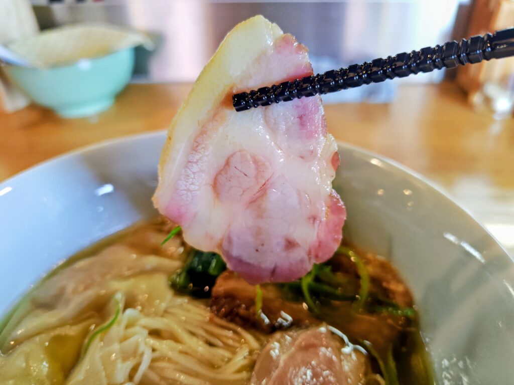肉厚のチャーシューが肉の旨味たっぷりで、青菜、フライドオニオンと全体のバランスよく最後まで飽きない構成です。