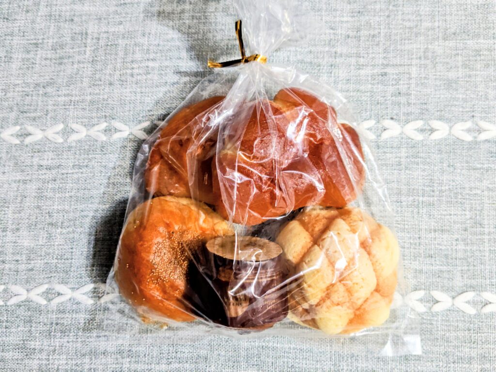 五色は、あんぱん、メロンパン、クリームパン、ジャムパン、マフィンが入っています。