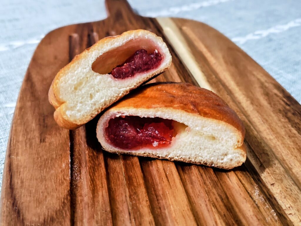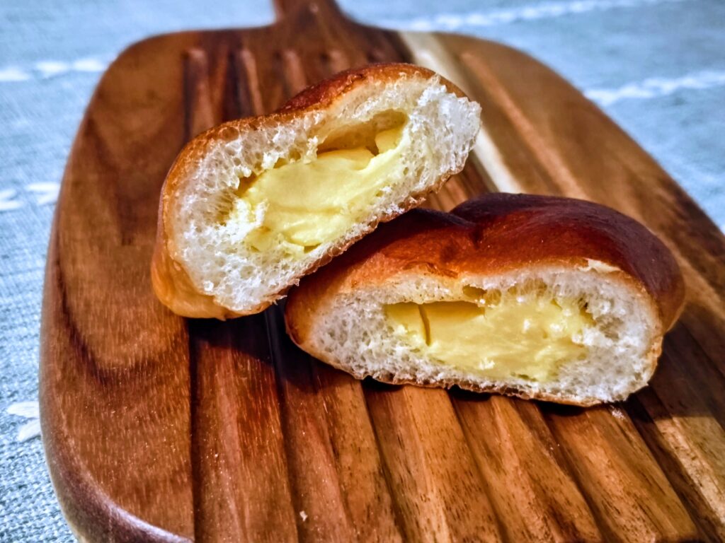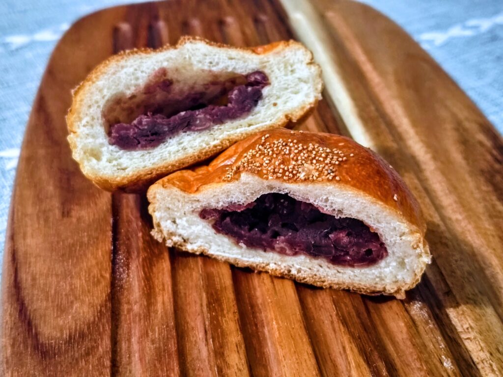 中身のあるパンの断面はこんな感じでカットした位置にもよりますが、粒あん、クリームはしっかり入っています。