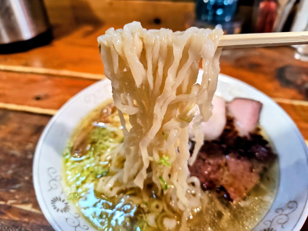小麦の風味豊かでコシが強く、多加水らしいモチモチ食感の旨麺です。