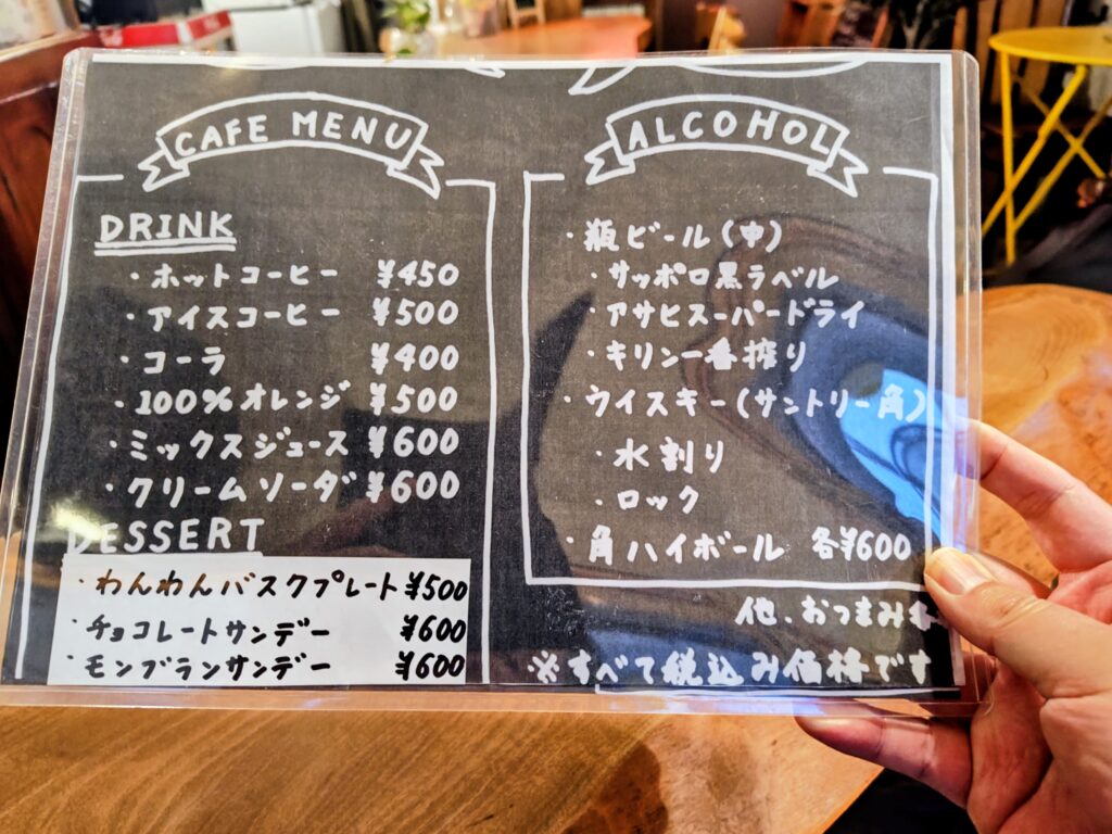 メニューはドリンク、スイーツ、アルコール、おつまみのラインナップ!