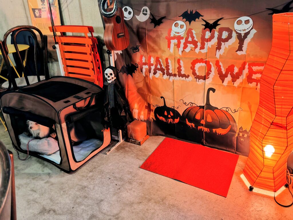 全席禁煙、全8席のハロウィンの飾り付けがされたお洒落な店内です。