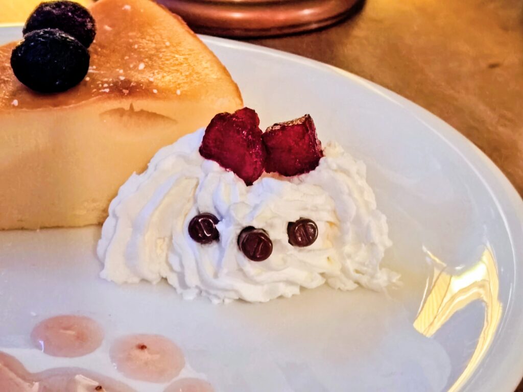 ワンワンバスクプレートはチーズケーキにクリームの看板犬りっちゃん、ジャムの手形とキュート!