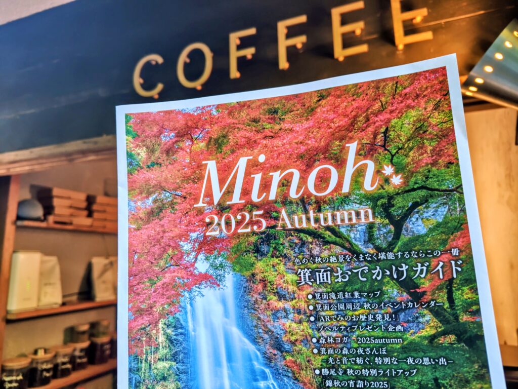 お店前には『Minoh 2025 Autumn』箕面おでかけガイドが置かれています。