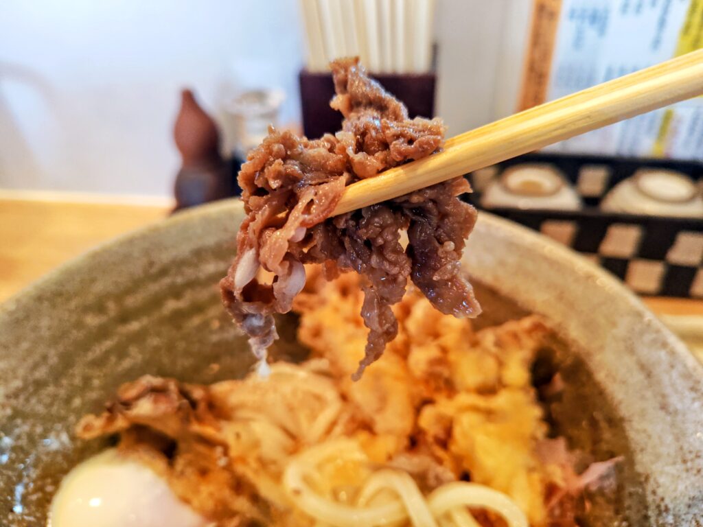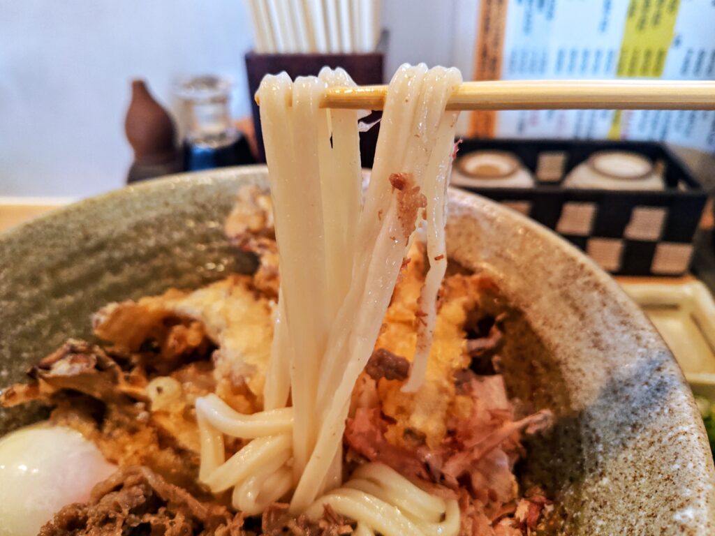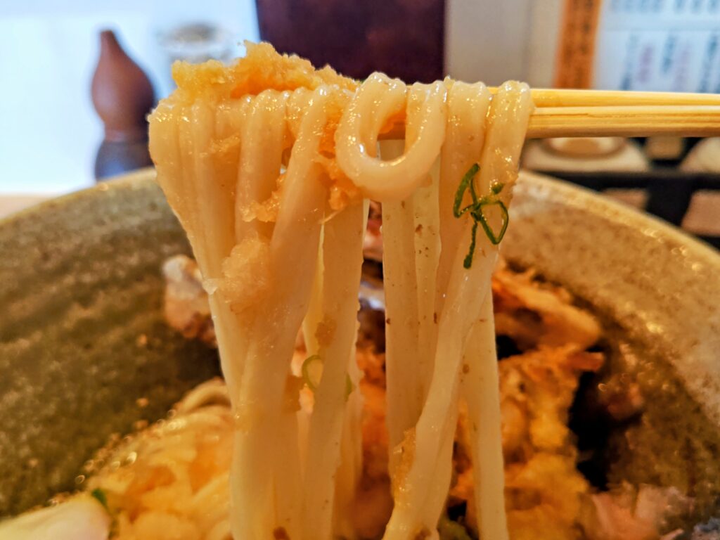 うどんは中程度な太さでエッジがビシッと立ち、表面はツルっと滑らかの踊るモッチリ感!!!