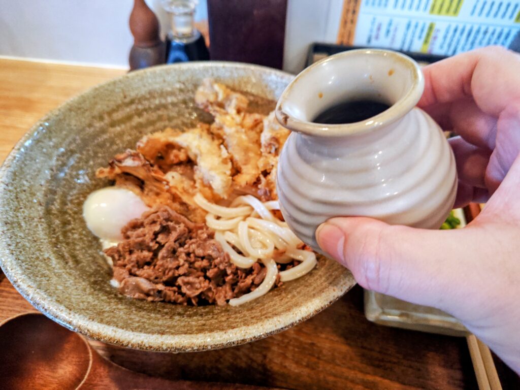 ぶっかけ出汁を半分ほどかけて~