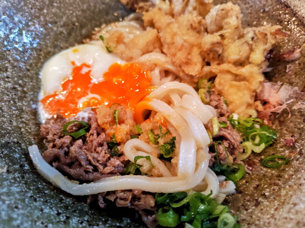 温玉の黄身をつぶし、うどんと一緒に至福です!