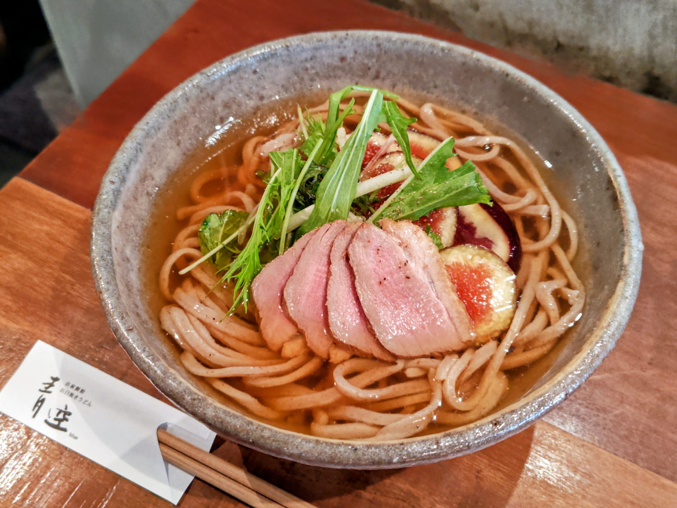いちじくと鴨ハムの冷かけうどん1,600円なり。