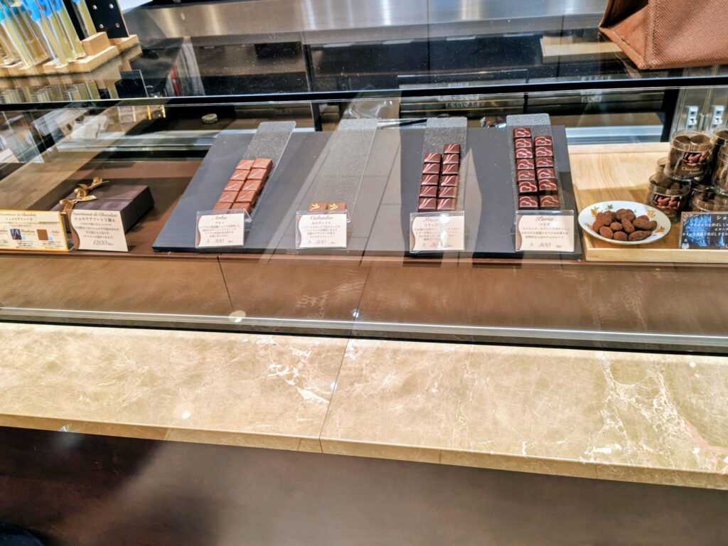 常温可能なショコラショコラ、新商品の無花果と胡桃が積まれています。