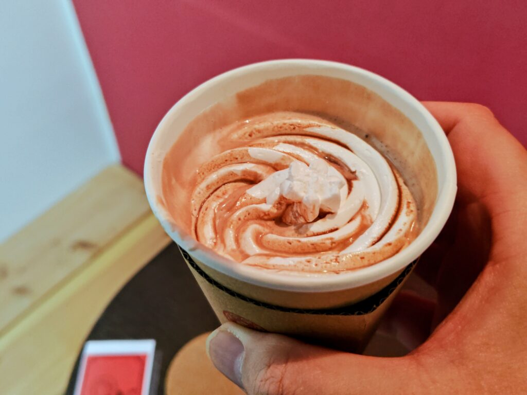 飲み進めるとチョコレートのビターにホイップクリームの甘さが加あり更によい飲み応え。