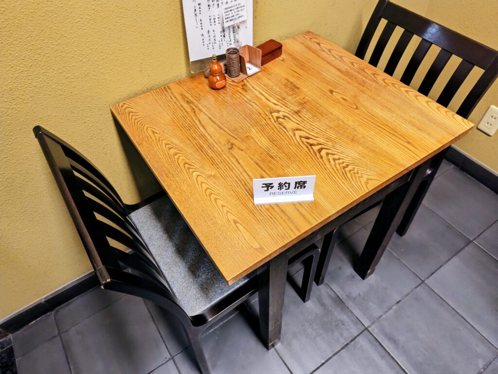 入店して予約の旨を伝え、写真撮影の許可を頂きテーブル席に。