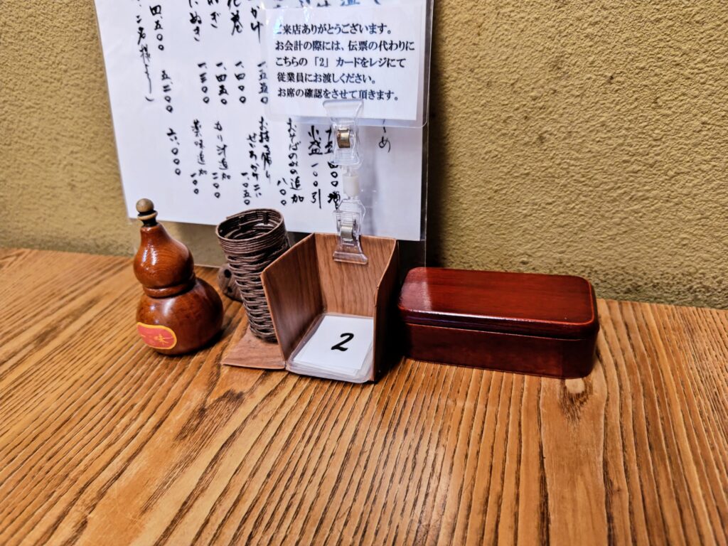お蕎麦屋さんではレアなお会計の際には伝票の代わりにカードをスタッフさんに渡すルールです。