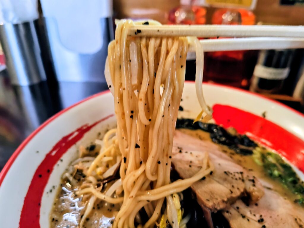 そしてやはり焦がしにんにく油!絶妙な焦がし具合のほろ苦く香ばしい風味が豚骨スープを引き立てています。