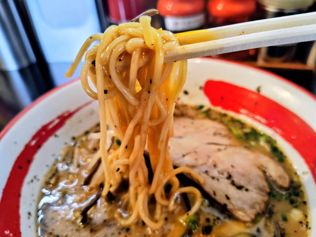 熊本ラーメンは豚骨スープに鶏ガラを加えてコクを出し、香ばしい焦がしニンニクやマー油で独特な風味が特徴!