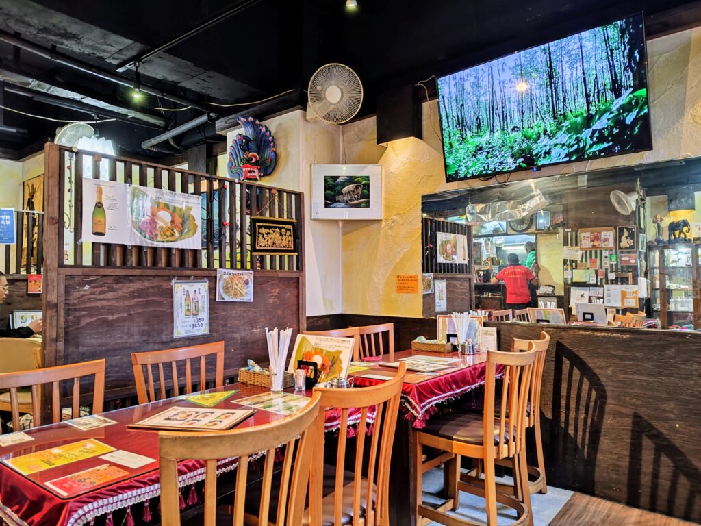 全席禁煙、全80席の大箱、スリランカの絵や写真が飾られている店内です。