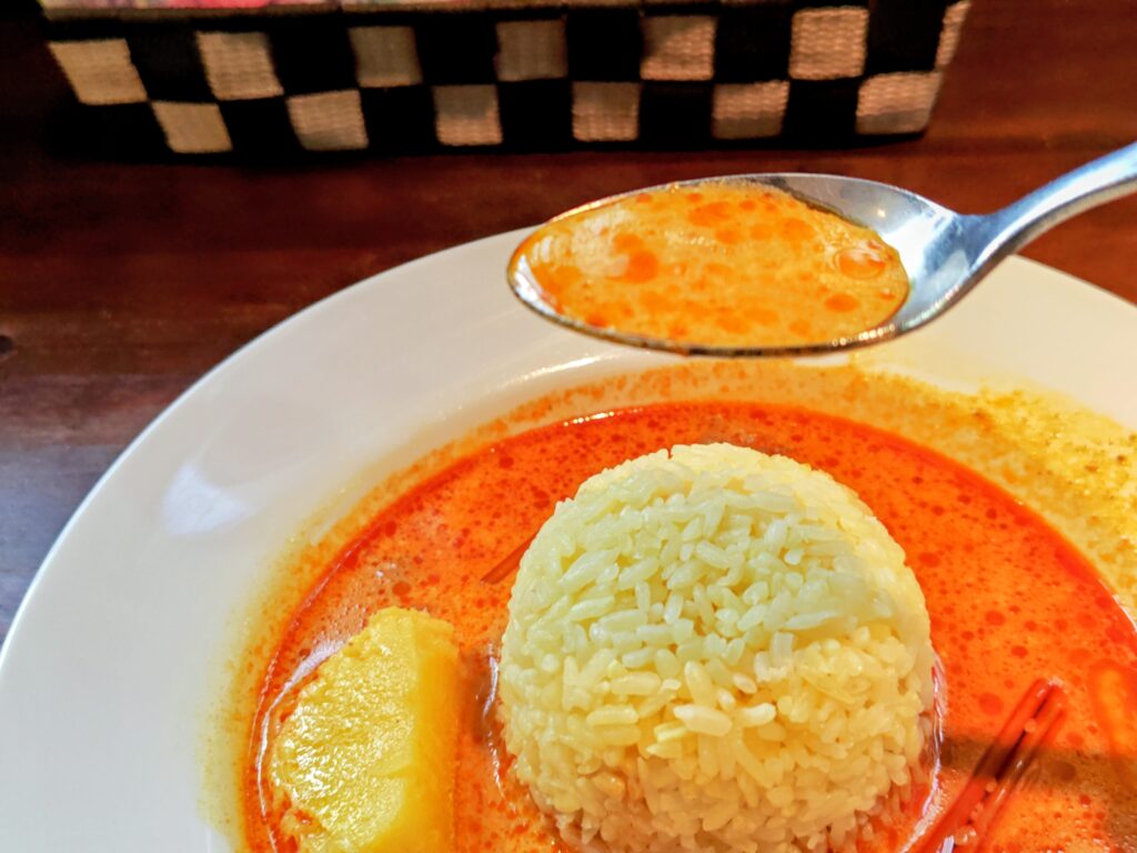 ココナッツベースに香り豊かなスパイシーにコクで適度な辛さです。