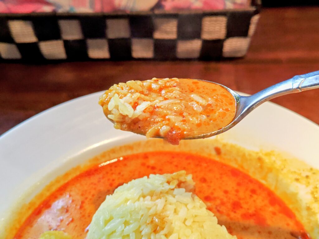 ライスを崩し、ルーに浸すのがベターなスリランカカレーです。