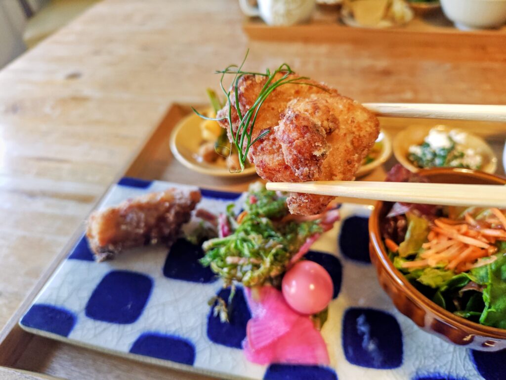 鶏唐揚げは自家製の麹調味料に漬け込まれ衣カラッと身はジューシー!