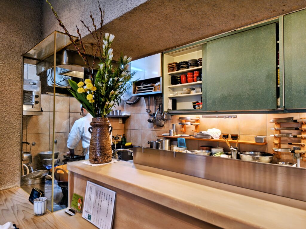全席禁煙、全21席(カウンター6席、テーブル2卓6席、座敷2室8席)生花が飾られ白木一枚板のカウンターと凛とした空気の流れる落ち着いた店内です。