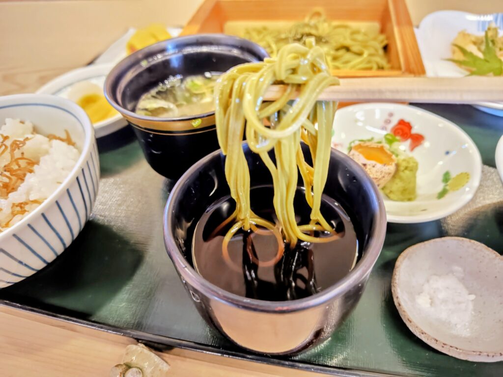 つけ出汁は濃い目のキリッと!茶そばと相性抜群です。