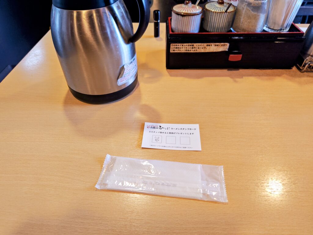 卓上には3個押印⇒唐揚げプレゼントのスタンプカード!