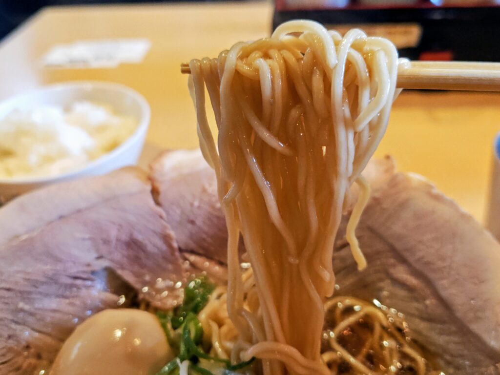 やや甘めの醤油に豚の旨味もしっかり感じる奥深い旨みのスープです。