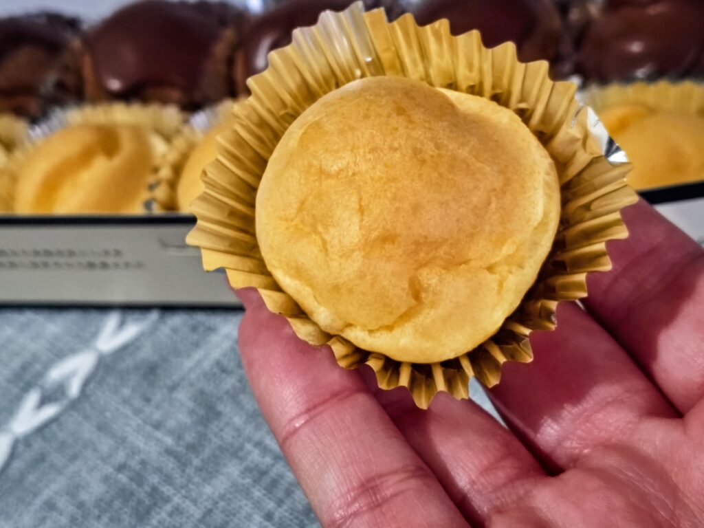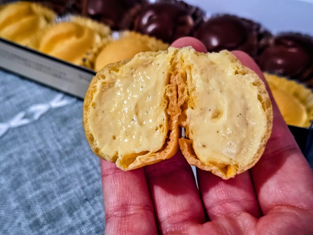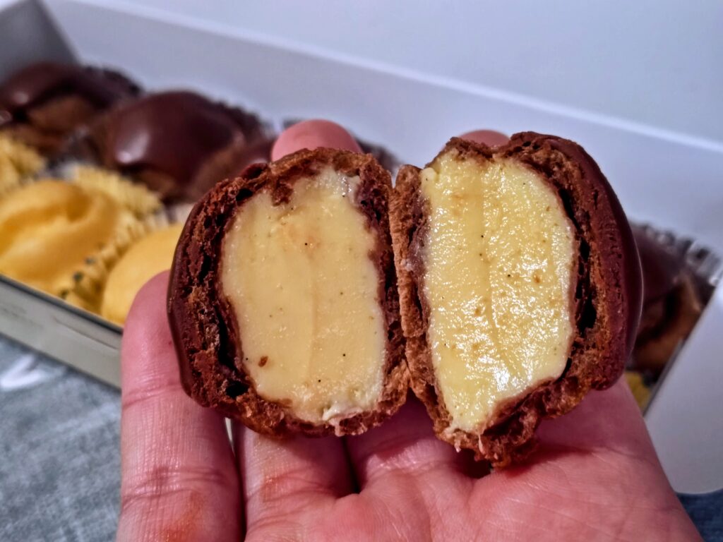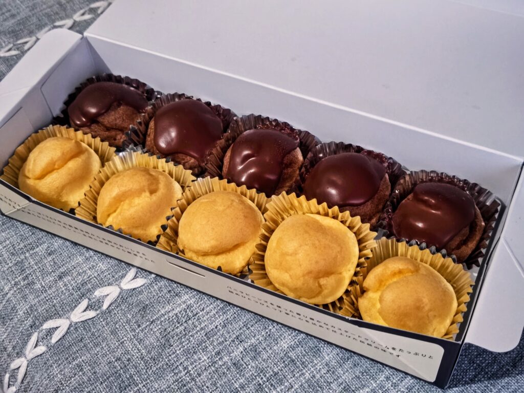 中のクリームは同じですが、シュー皮の苦みとショコラの口溶けよく大人の味わいです。