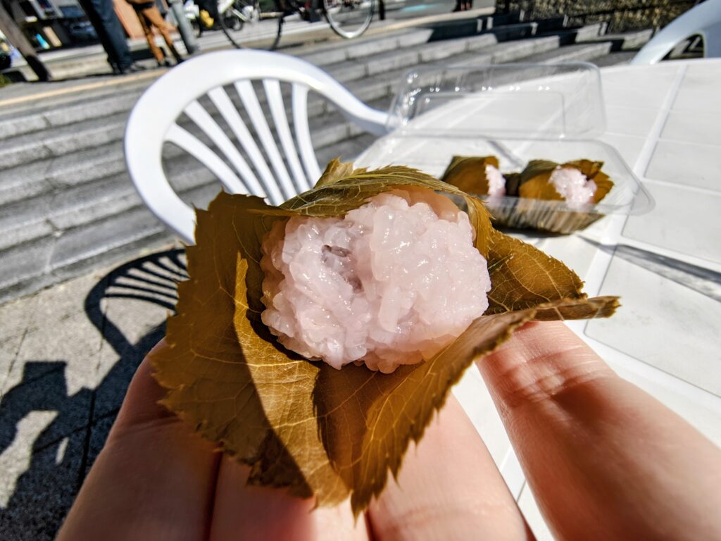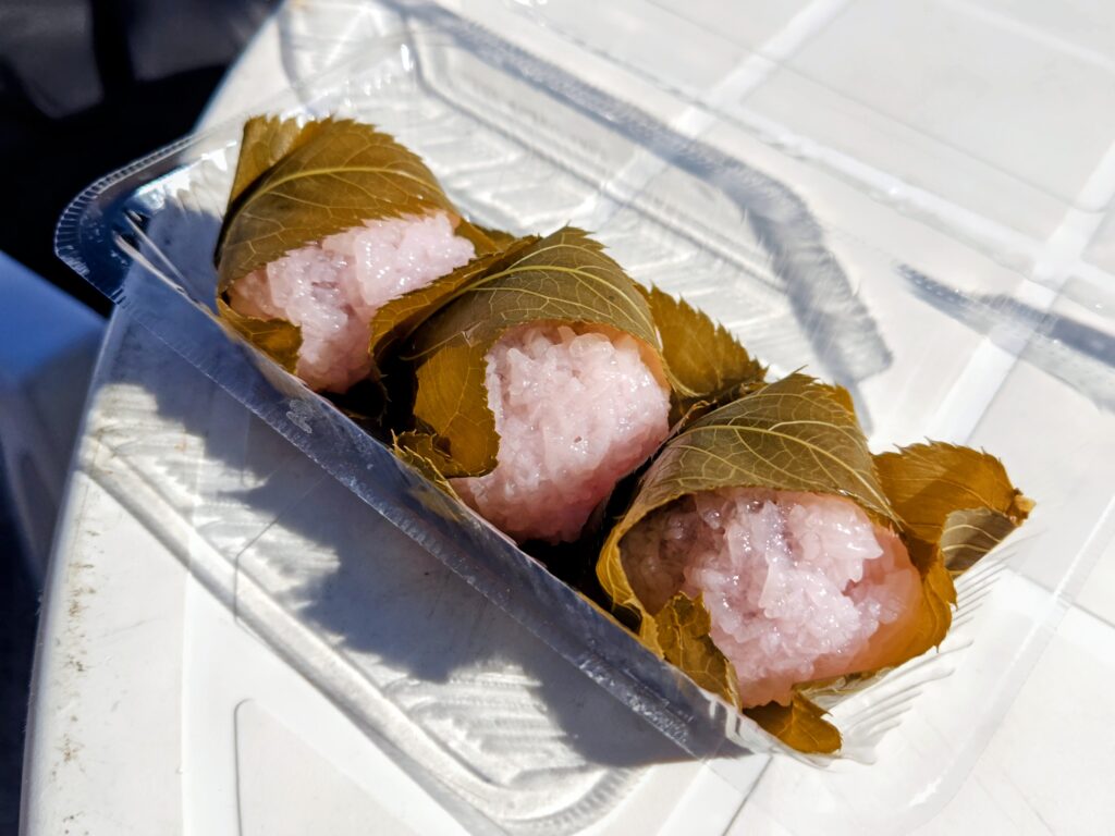こしあん入りで、お米のつぶつぶ感も程よく美味しい桜もちです。