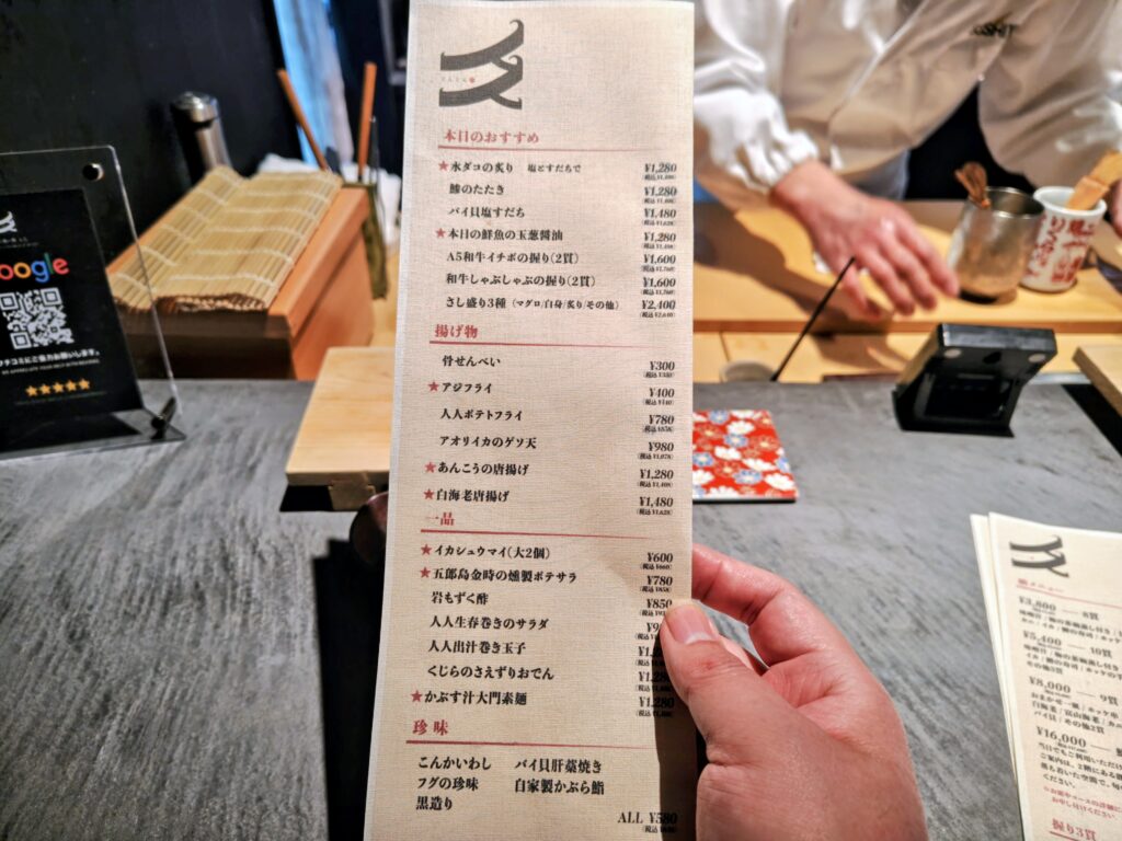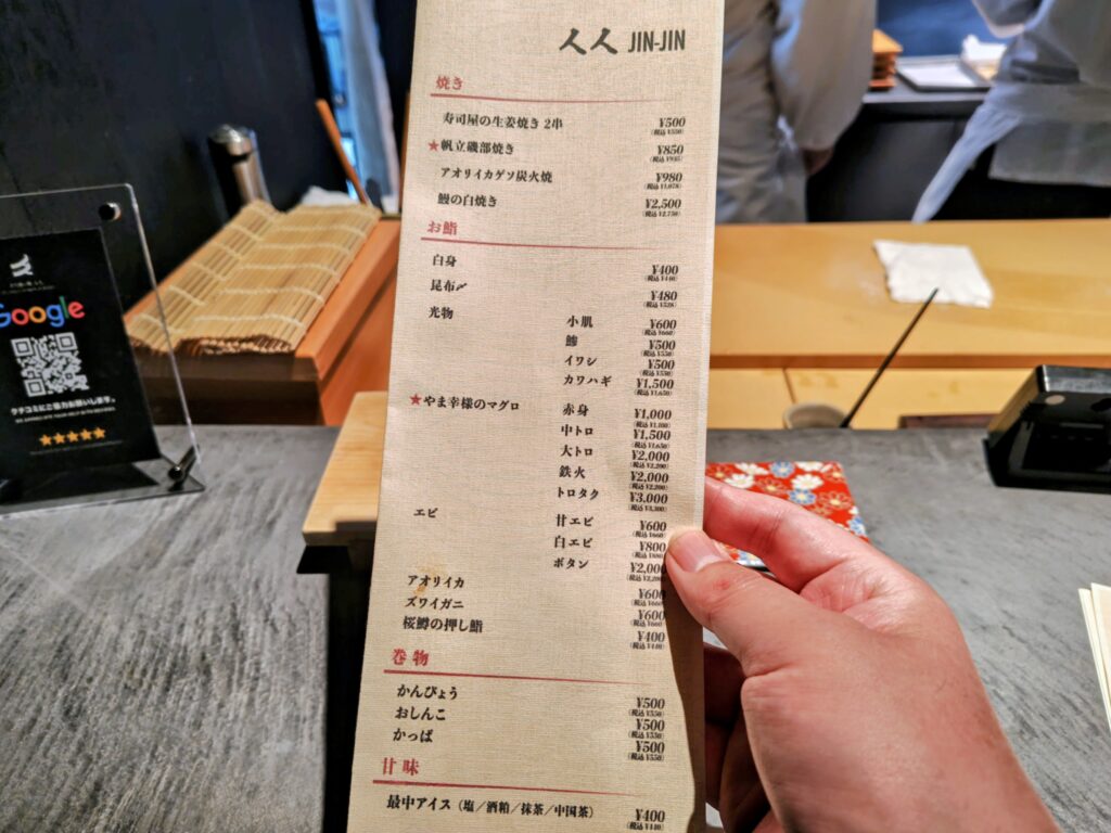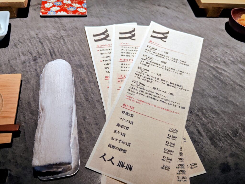メニューは8貫コース、10貫コース、おまかせ9貫コース、鮨人コース(2階)のコース4種。