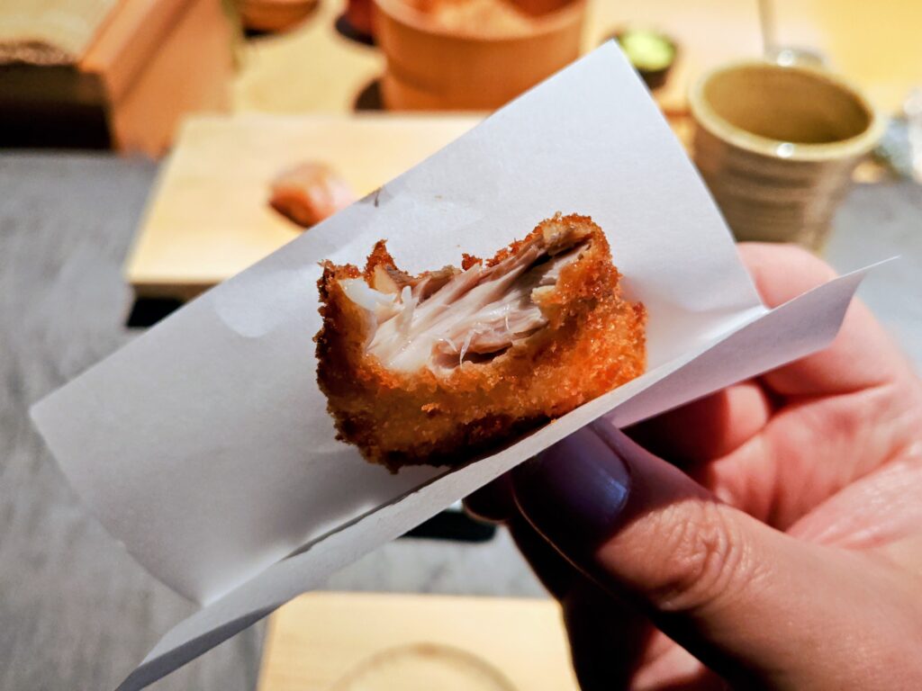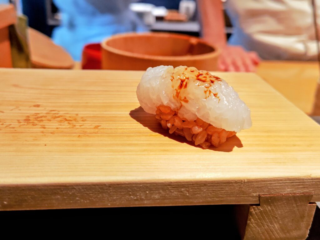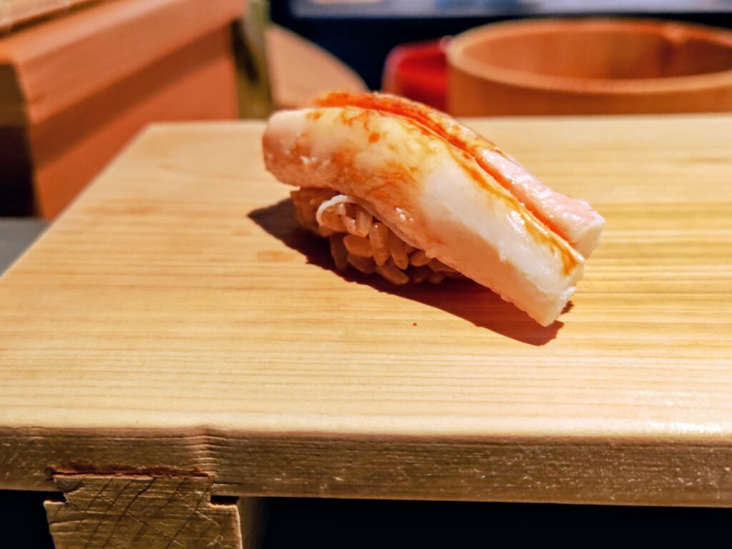 太い足を惜しみもなく剥き身にこの時期ならではの旬の鮨です。