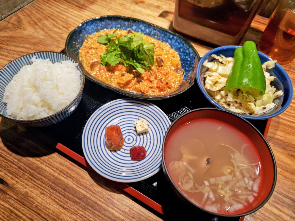 この週は3連休あけの店主さんワンオペのため鶏ミンチ無水カレー定食のみの提供です。