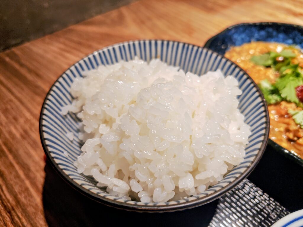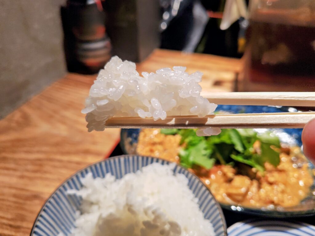 ミネラル豊富な水で炊き上げられ、粒立ちがよく旨くお味噌汁とご飯だけで贅沢です。