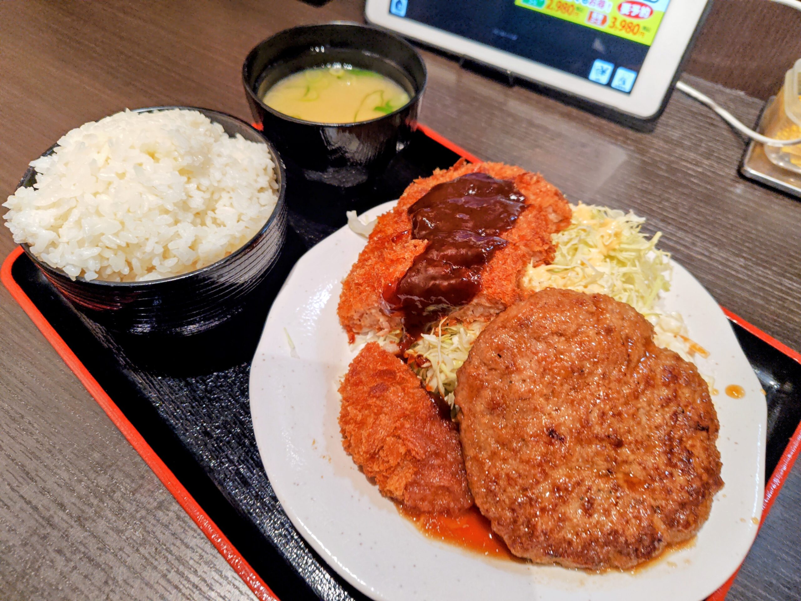 だんな手ごねハンバーグandチキンメンチカツ定食、