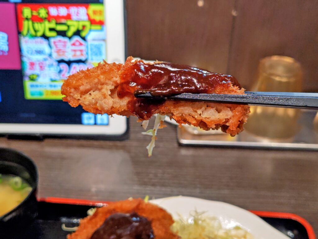 肉汁がご飯に染み、少し苦味あるのデミソースでご飯がどんどん減っていきます。