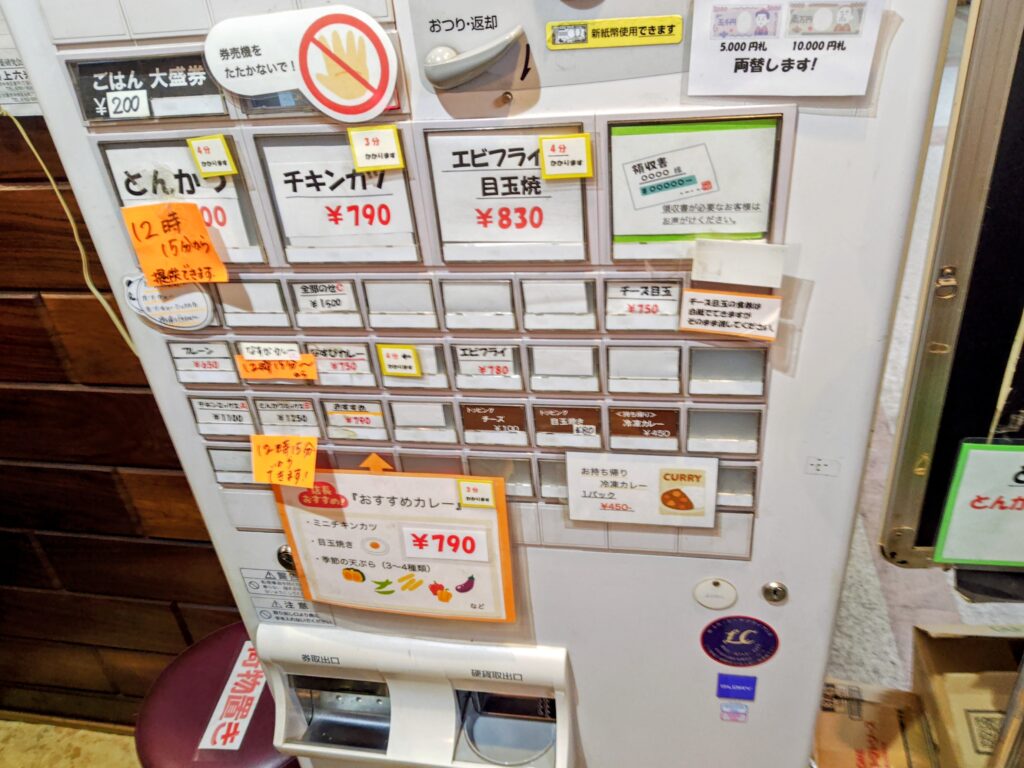 券売機には提供までの目安時間あり、とんかつ系は12:15から提供。