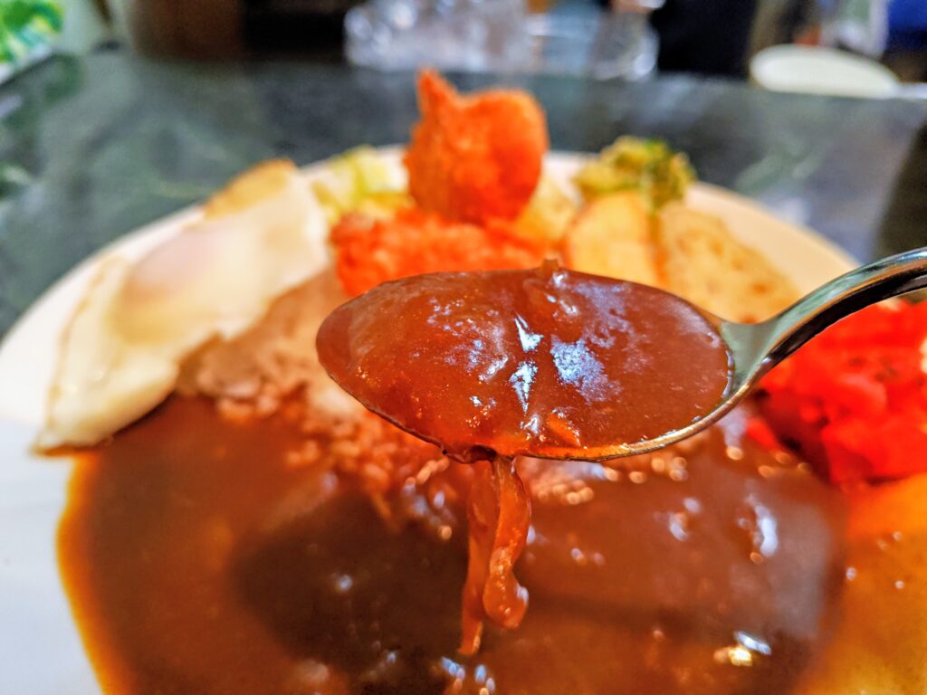 やや粘性のあるルーはパパイヤやマンゴー、バナナなどが入ってフルーティな味わい!
